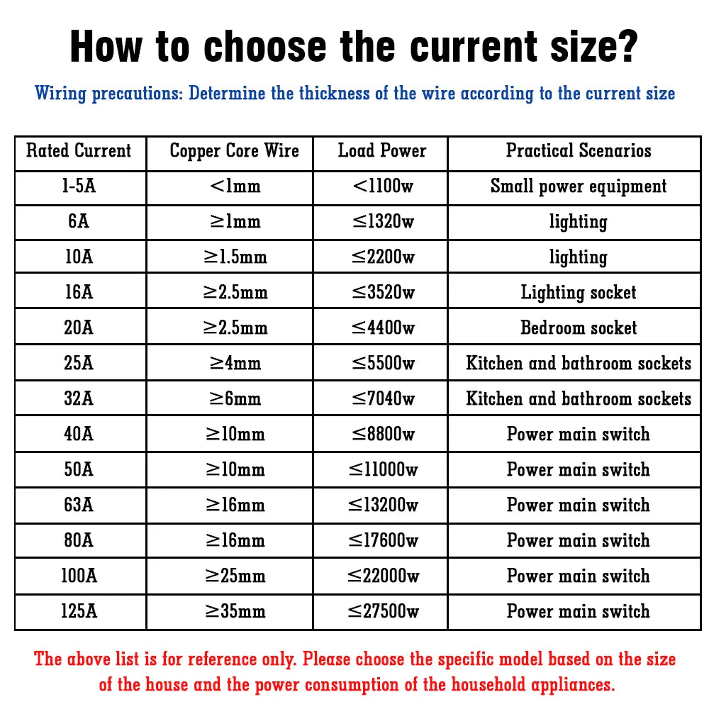 Rated Current: 6/10/16/20/25/32/40/50/63A