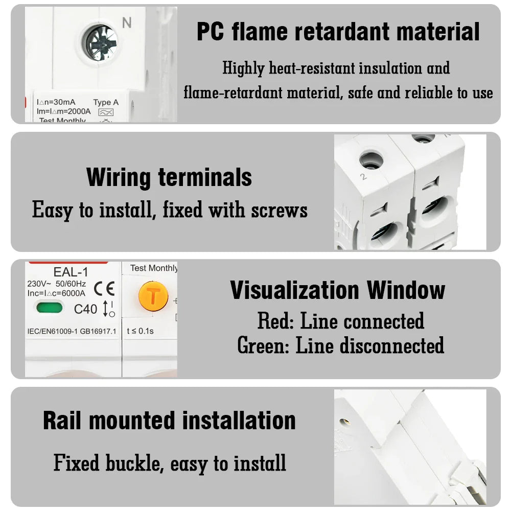 ⚡ 2P 30mA Type AC A B RCBO RCCB MCB Electronic Residual Current Circuit Breaker Over Short Current Leakage Protection EV Charger