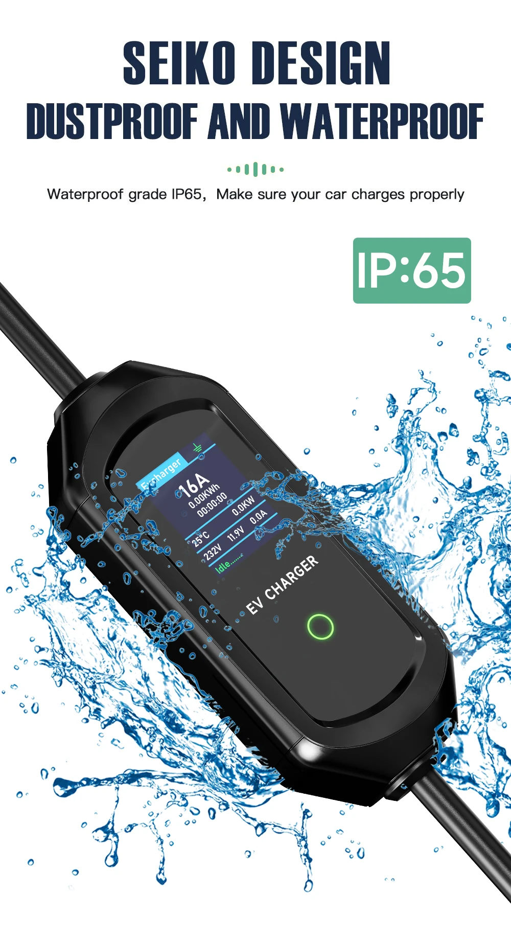 Well-designed: The special socket effectively prevents dust from entering the EV charger interface. Cable is sturdy and durable, suitable for use in various parking lots or family garages. It can be hung on the holder after use, which is flexible and convenient. When fully charged, the device will automatically power off.