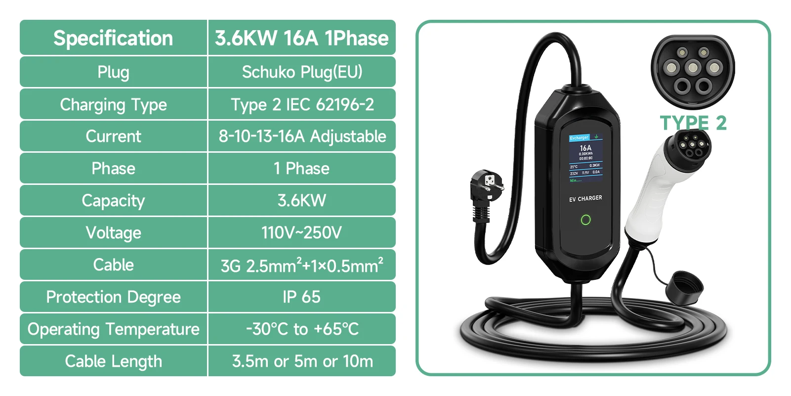 Quick & Easy Operation: When you are traveling or visiting relatives and friends, you don't have to worry about charging, because our chargers can be carried with the car and you can check every charging data by OLED screen on the charger. Simply connect the plug with the EV inlet, and then the charger will automatically detect the connection status and start charging.
