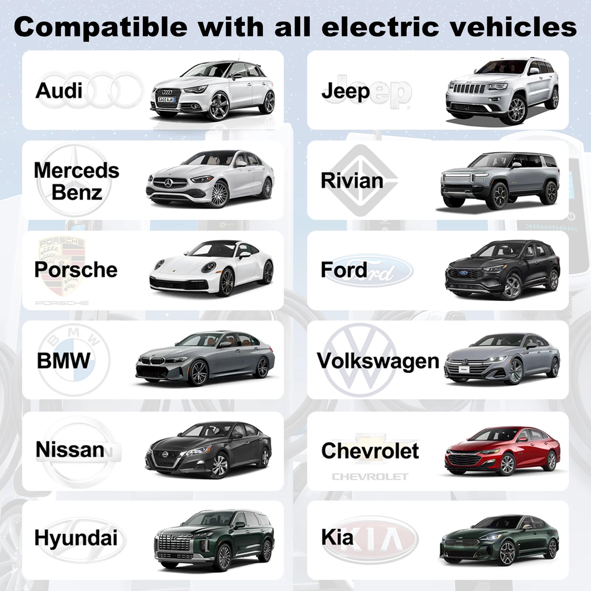 【Secure charging】Our chargers have safety protection measures such as overcurrent protection, overvoltage protection, undervoltage protection, leakage protection ( TypeB AC30mA + DC6mA ) , and overheating protection, with a waterproof grade of IP66.