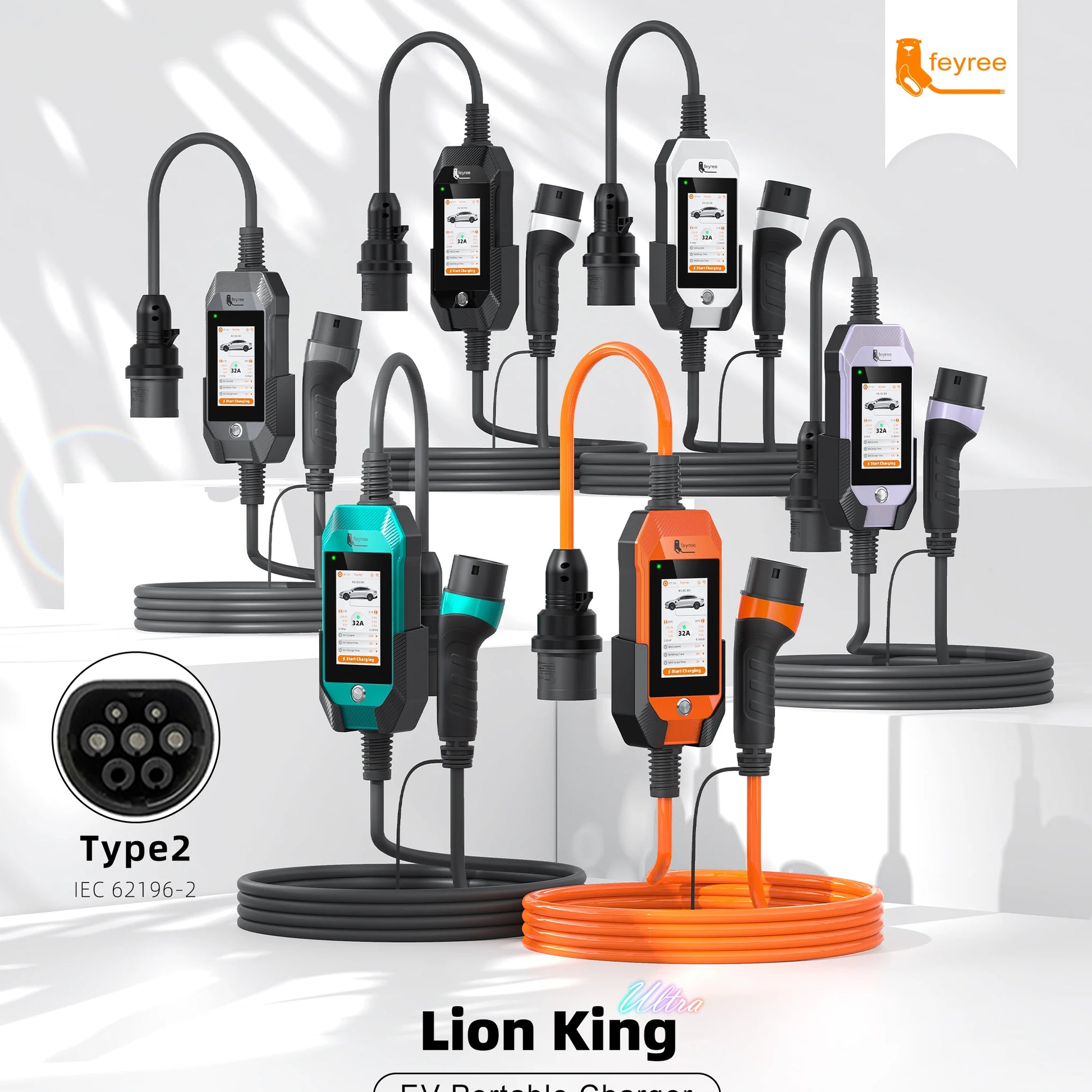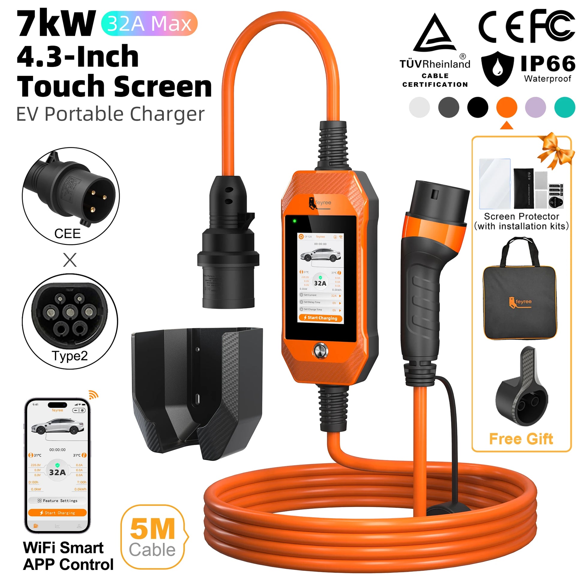 feyree 4.3 Inch Touch Screen Portable 7kW EV Charger Type2 Charging Plug with Smart Wifi APP AC Home Charger Professional Design