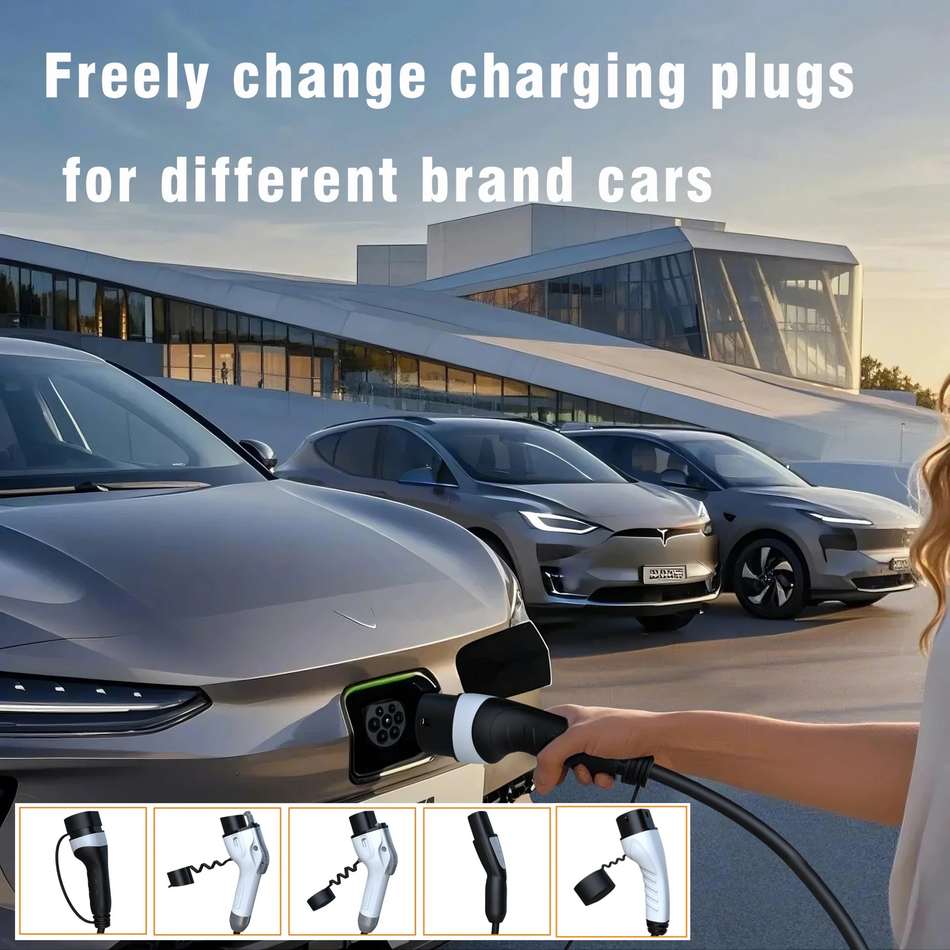 --Support different car charging: If you have multiple cars at home with different charging standards, the replaceable charging plug can charge all cars without purchasing additional chargers;