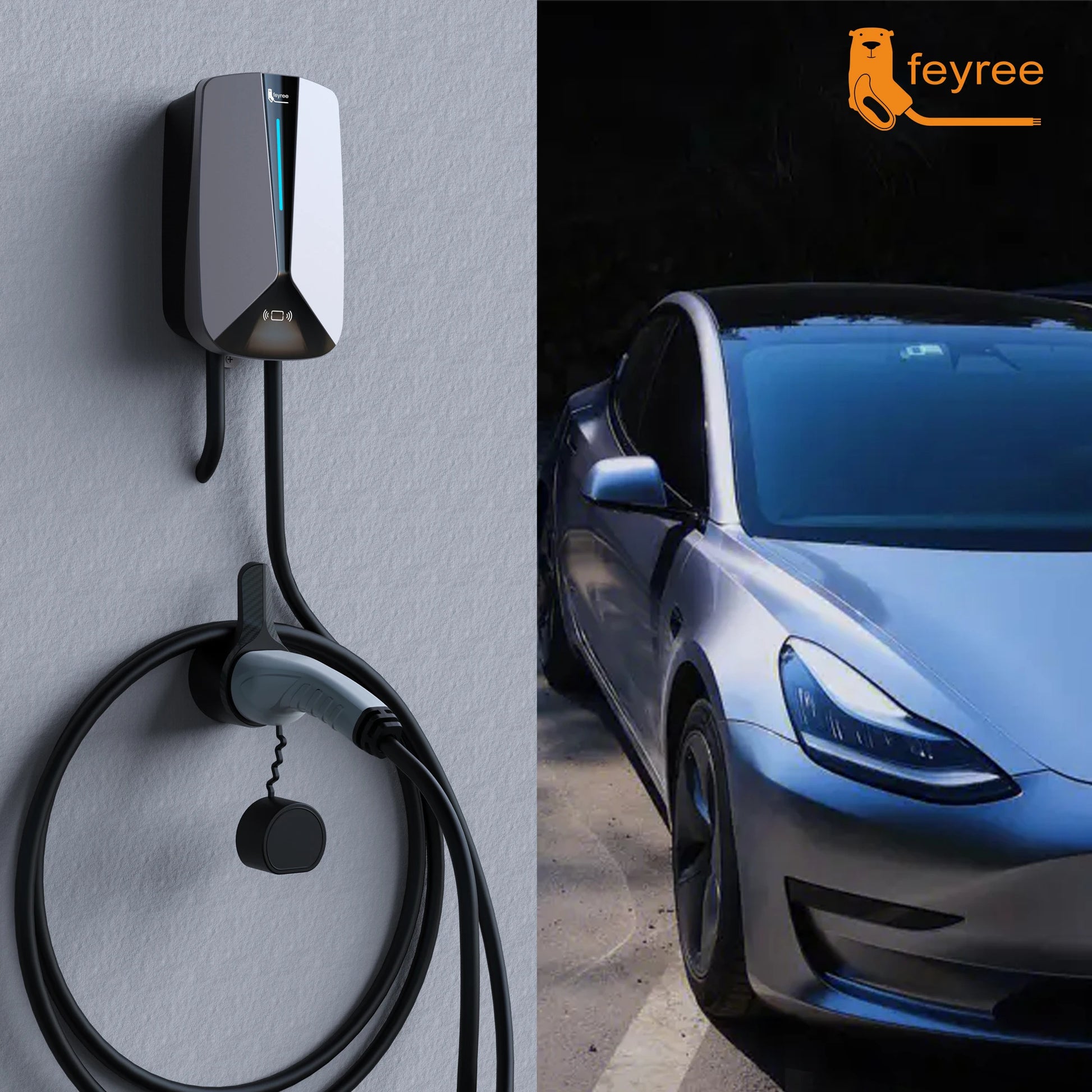 feyree Type2 32A 7.6KW 1Phase EV Charger EVSE Wallbox RFID Cards Version 5m Cable Charging Station for Electric Vehicle Car
