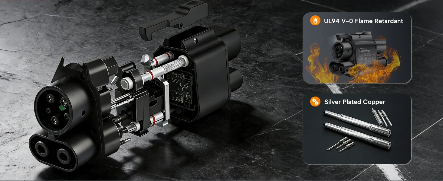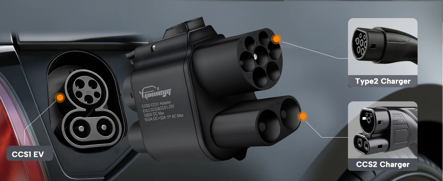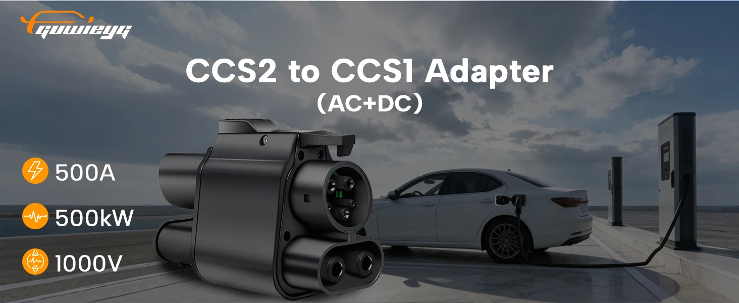 GUWIEYG CCS2 to CCS1 Adapter 500A 500kW From CCS2 to CCS1 DC+AC Electric Vehicle Charger DC 1000V Fast Ev Charging Adapter
